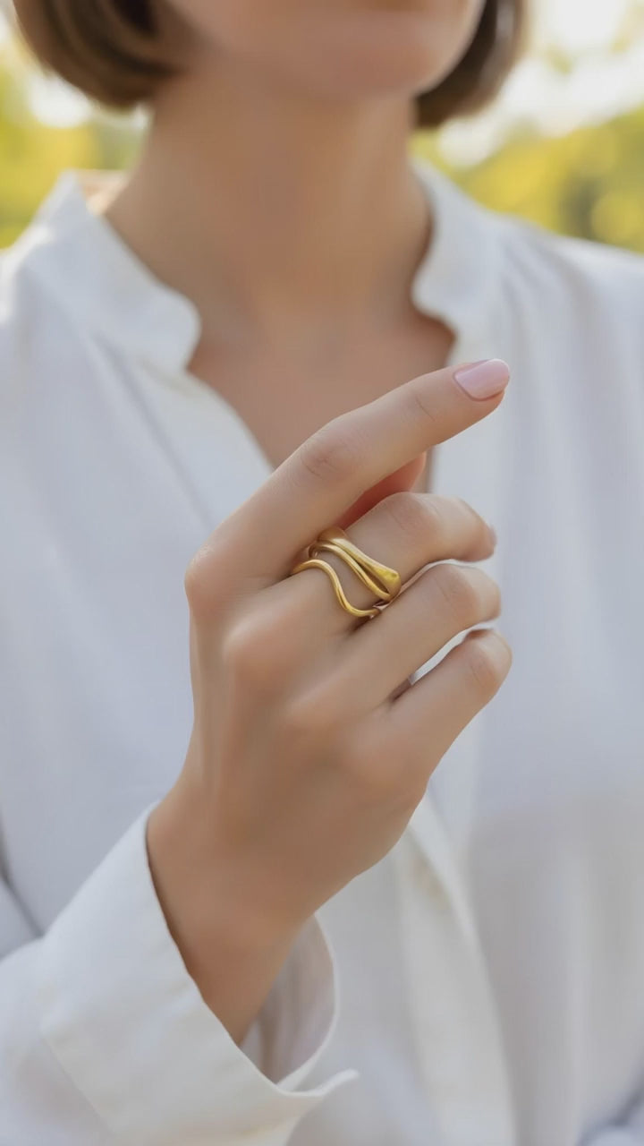 18k Gold Plated Geometric ring, tarnishing-free and waterproof, retro style for everyday.