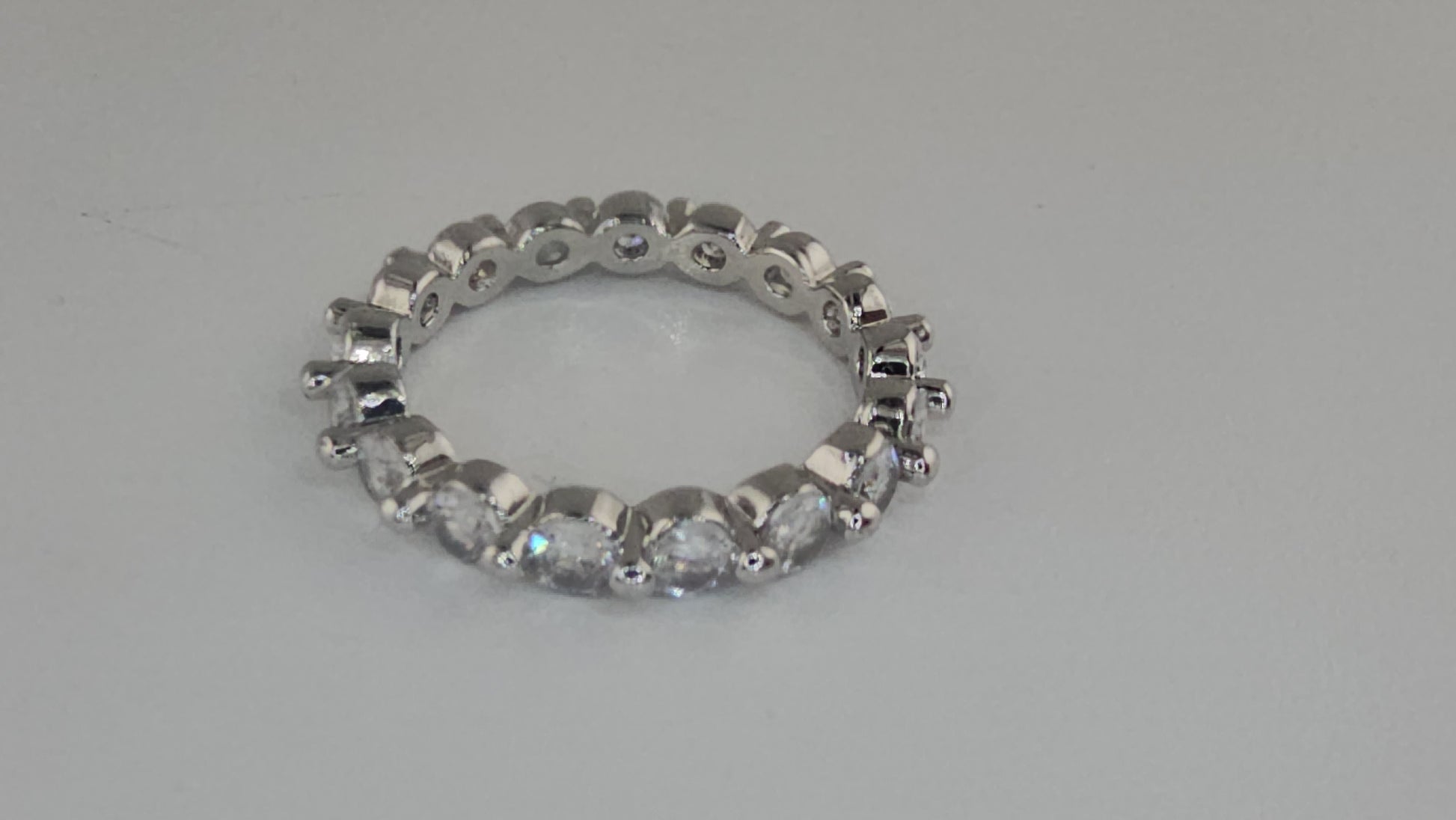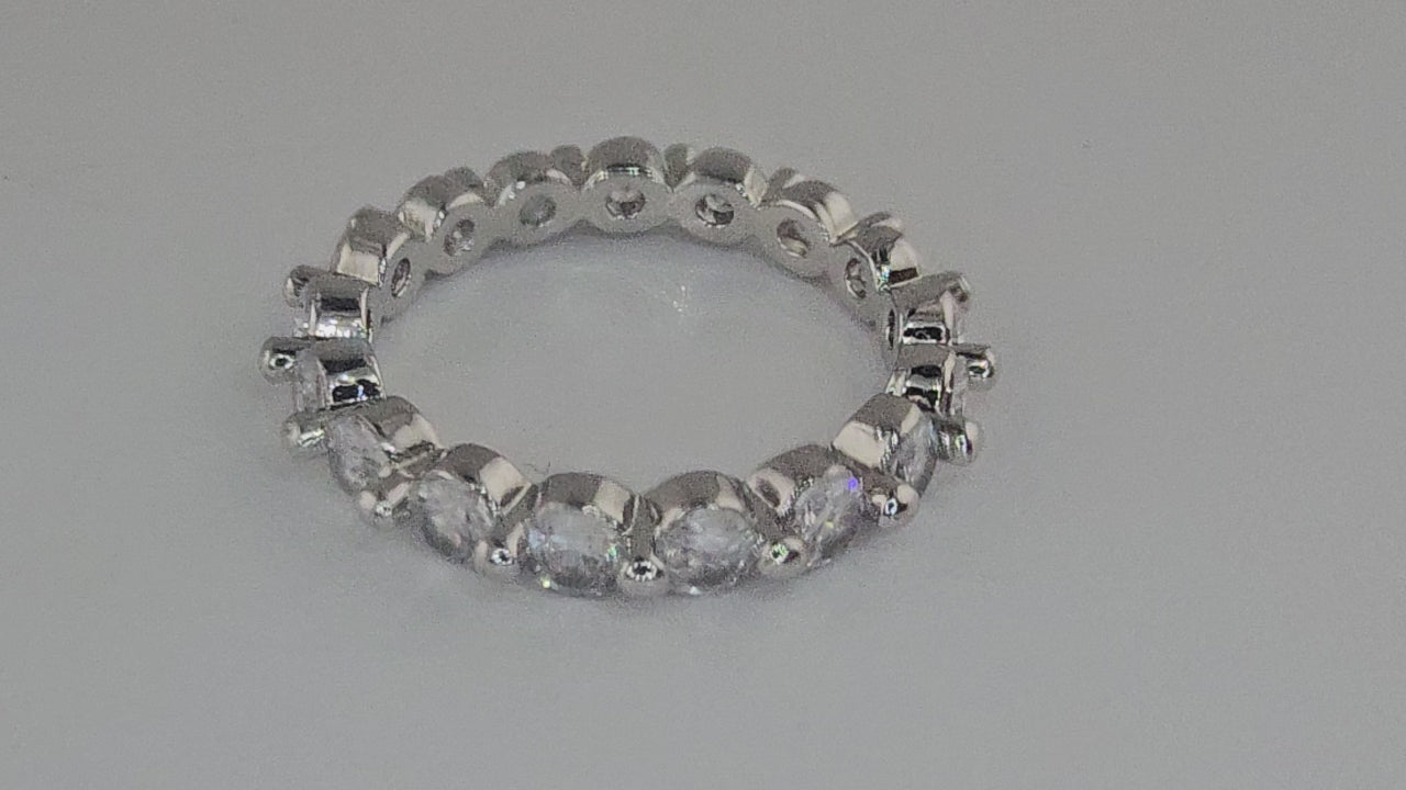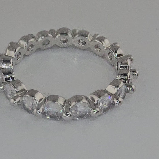 Exquisite Spatkling Round Imitated Diamond Eternity rings, Silver Plated. Item# F1343