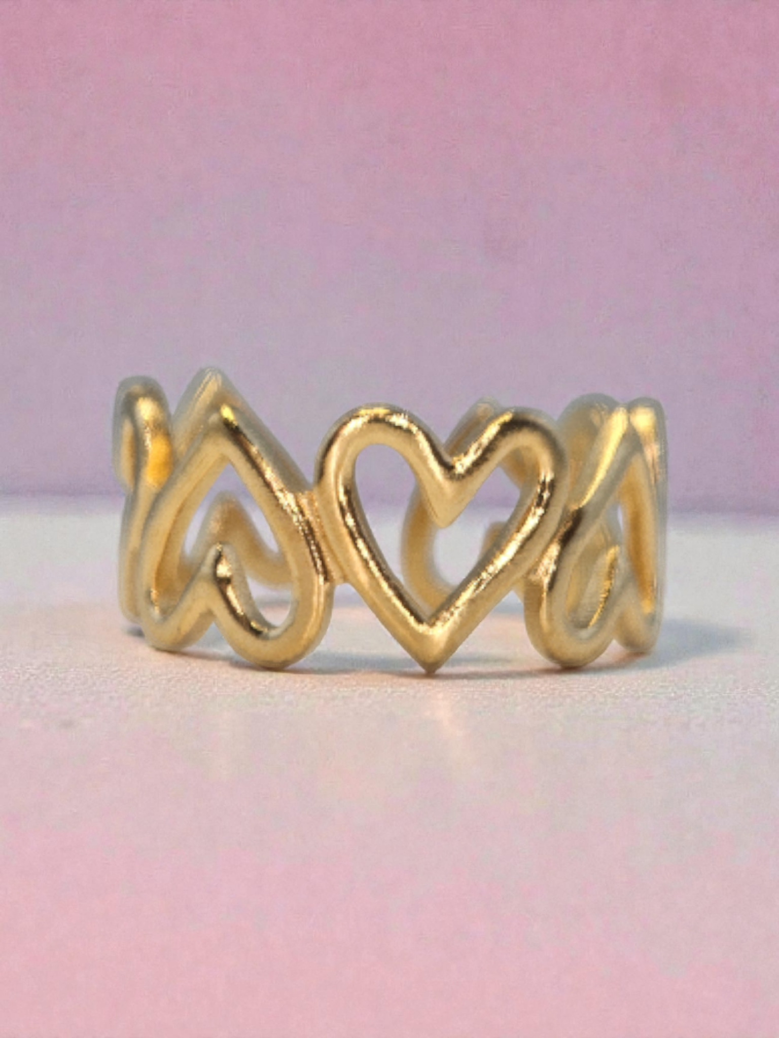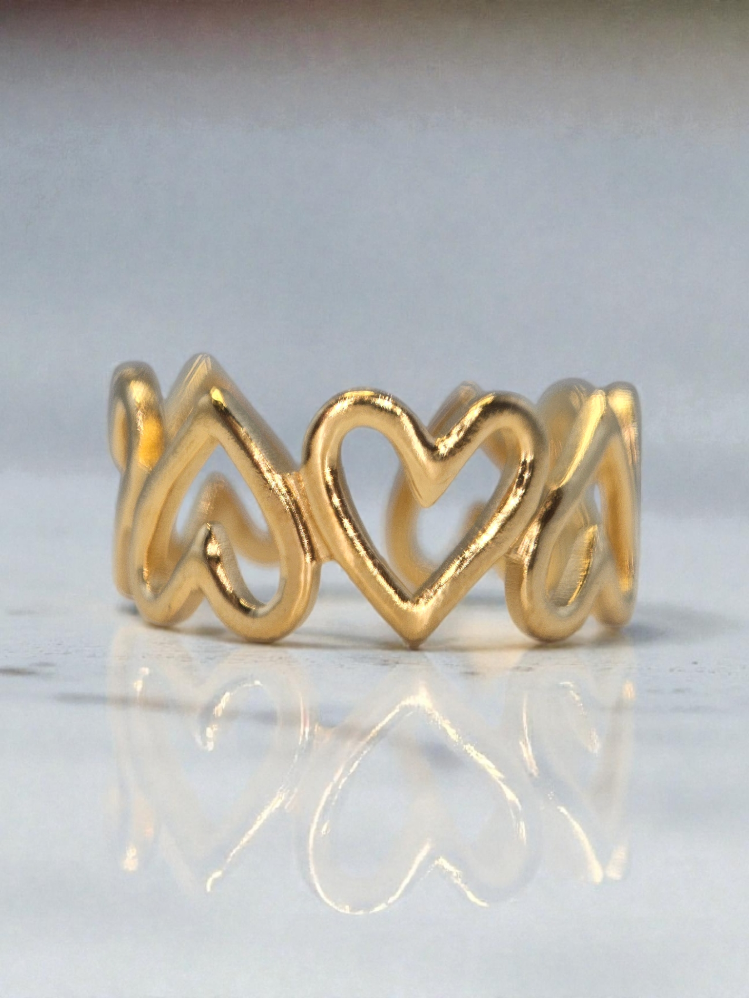 This I8k Gold Plated Love Heart shaped Ring (Item#NH42521634) features a geometric design and is crafted with durable 304 stainless steel for a waterproof and non-tarnish finish. Its ION Plating (IP) adds durability and shine, while the adjustable open design allows for a perfect fit. Elevate your look with this elegant and long-lasting piece.I8k Gold Plated Geometric 304 Stainless steel waterproof and Non Tarnish ION Plating (IP) open adjustable.