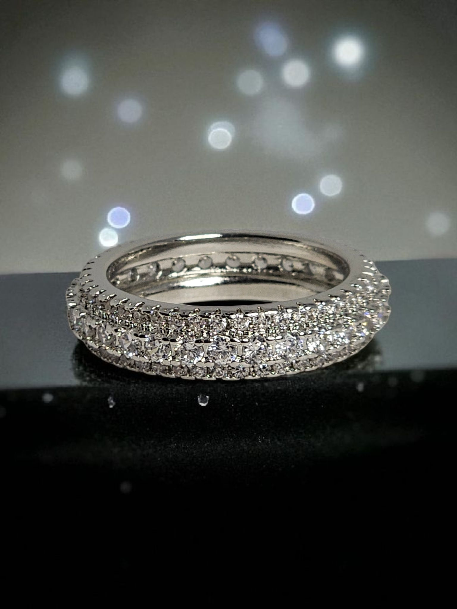 Luxury Brads Jewelry Triple Circle CZ Ring Silver Plated.